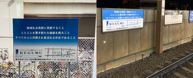 - 駅構内に看板を提出いたしました。(左:西春駅 右:上小田井駅)