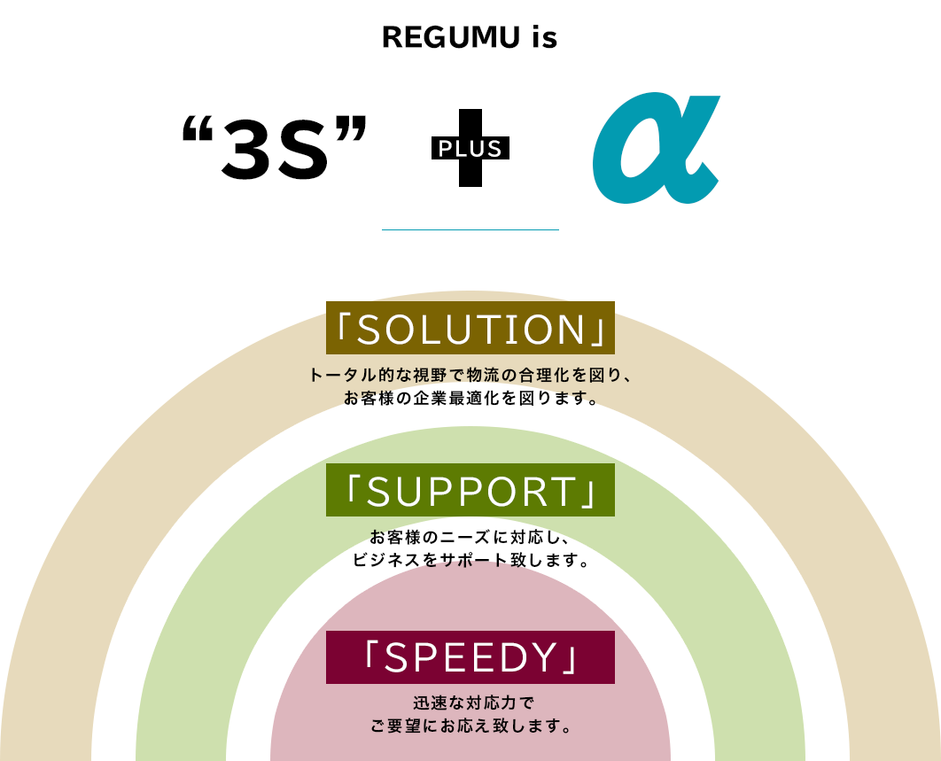 レグムスタッフ全員(All staff)がお客様の物流業務全て(All about logistics)を全力(All power)でサポートさせていただきます。